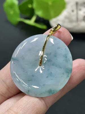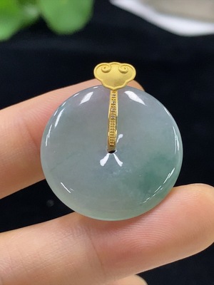 F26939070 Jadeite Peace Buckle Inlaid Pendant, 18K Gold Inlaid, Total Weight Approximately 10.4g
