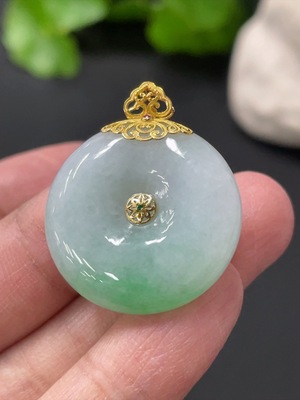 F12320361 Jadeite Safety Pendant with 18K Gold Bail
