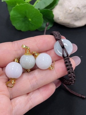 F37422848 Jadeite Bead Pendant/Peace Knot Bracelet, Non-Gold Inlaid