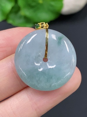 F34974418 Jadeite Pendant Peace Buckle 18k Gold Inlaid with Diamonds Total Weight Approximately 16.04g