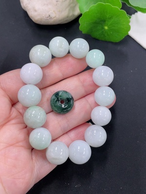 F38491393 Jadeite Bead Necklace with Peace Pendants Sell as a Lot, Largest Bead Approx. 13.5mm (Including Other Mineral Components)
