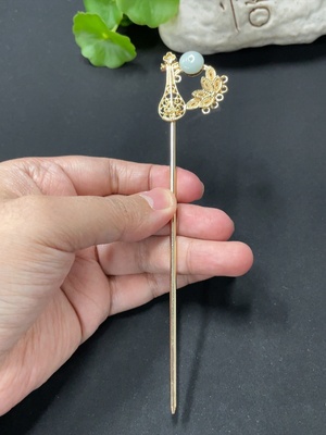 F34999767 Jadeite Peace-Knot Inlaid Hairpin, Non-Gold Setting, Total Weight Approx.9g