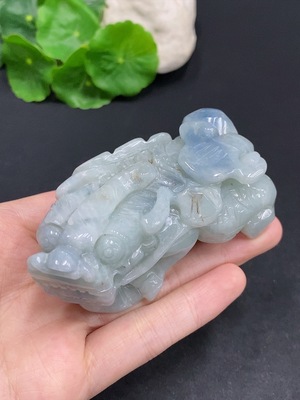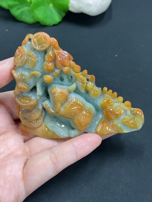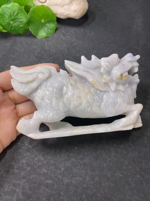 F34030686 Jadeite Ornament Auspicious Beast Total Weight Approx. 369g