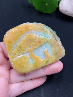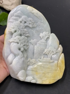 F33945489 Jadeite landscape ornament, color origin undetermined, total weight approx. 167.4g