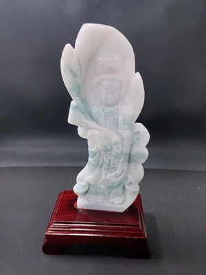 F35088591 Jadeite Guanyin ornament with base, total weight approx. 301.5g