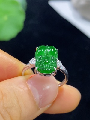 F35094358 Jadeite Pi Xiu Inlaid Ring 18k Non-Diamond Size 14 Total Weight Approx. 1.85g