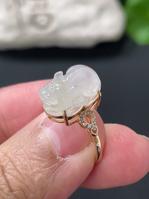 F37393215 Jadeite Pixiu Inlaid Ring 18k Gold Setting Size 14 Total Weight Approx. 1.3g