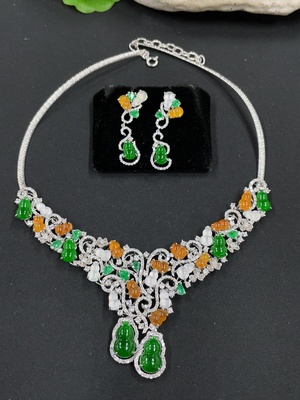 F37445652 Jadeite Gourd Inlaid Necklace Set with Earrings