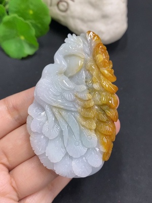 F33907823 Jadeite Phoenix Pendant Non-Gold Total Weight Approx. 41.2g (Including Cord Weight) Yellow Color Origin Undetermined