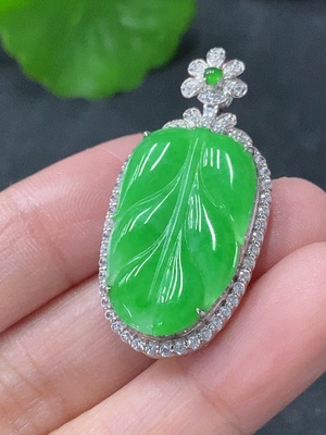 F33888010 Jadeite Inlaid Pendant Leaf Lucky Bean Non-Gold Inlaid Non-A Grade Stones