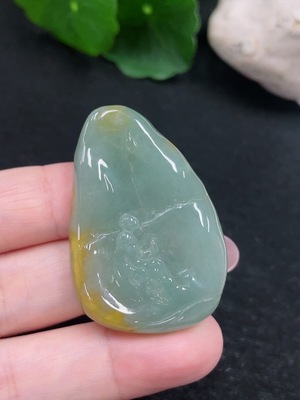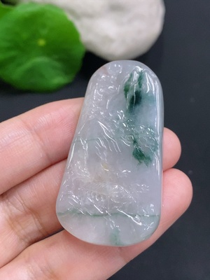 F27114146 Jadeite landscape pendant with a total weight of approximately 30.4g and undetermined color origin