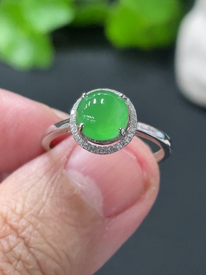 F36263734 Jadeite Cabochon Inlaid Ring Non-Gold Adjustable