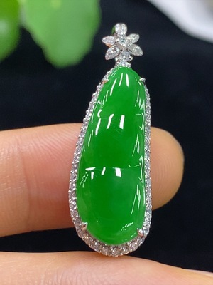 F35171710 Jadeite cabochon pendant, 18k gold setting with diamond accents, total weight approximately 1.9g