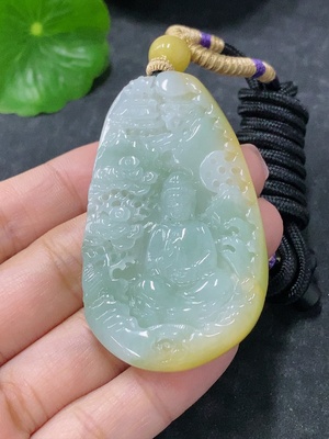 F34976650 Jadeite Pendant Landscape Guanyin