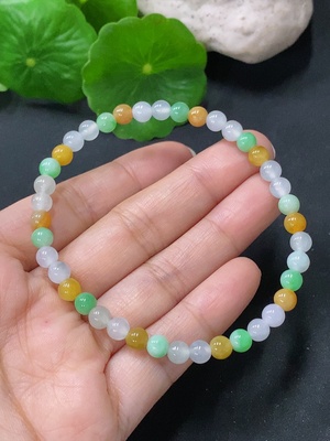 F34069003 Jadeite Bead Bracelet Approx. 4.7mm Total Weight Approx. 8.6g (Non-gold Inlaid)