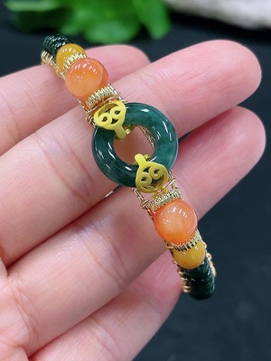F23677265 Jadeite Inlaid Hand Jewelry Non-Gold Inlaid Red and Yellow Beads Non-A Total Weight Approx. 14.28g