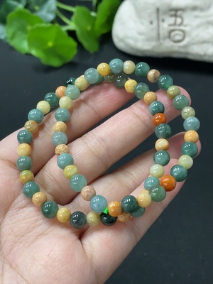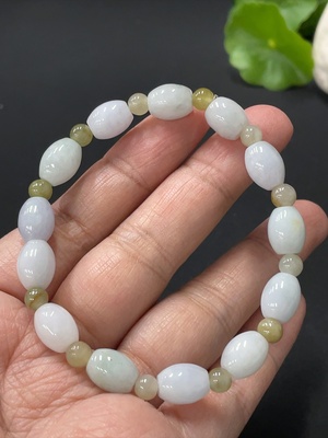 F36254827 Jadeite Bead Bracelet Approx. 6.3mm Non-A Grade with Non-Golden Beads