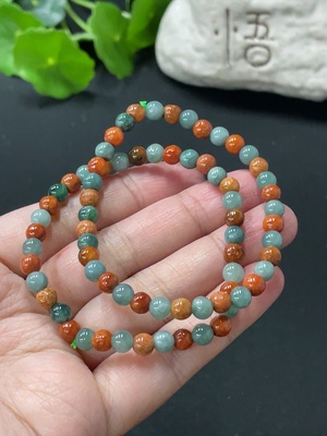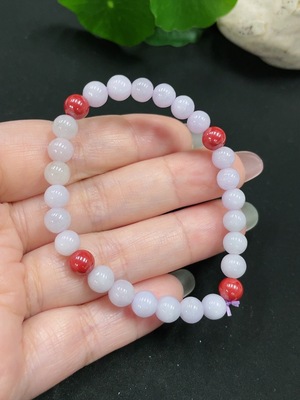 F29319639 Jadeite Beads Bracelet Approx.5.9mm Total Weight Approx.10.7g (Red Beads Non-A)