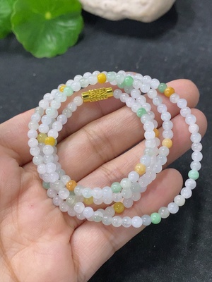 F34953334 Jadeite Bead Necklace Approx. 3.7mm Non-Gold Total Weight Approx. 12.98g Yellow Part Color Origin Undetermined