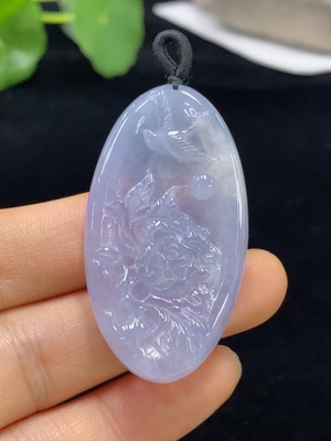 F30501661 Jadeite Pendant - Undetermined Color Origin - Flourishing Flowers Symbolizing Wealth and Prosperity - Total Weight Approx. 37.67g