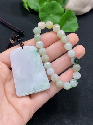 F34955045 Jadeite Pendant Ginseng Total Weight Approx. 15.56g Including Rope, Beads Not Grade A
