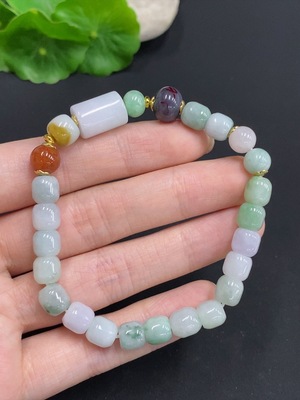 F34957767 Jadeite Bracelet Sell as a Lot, Yellow-Red Part Color Origin Undetermined