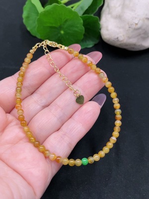 F34012025 Jadeite Beads Bracelet Approx.3.7mm Total Weight Approx.5.2g Non-gold-inlaid Yellow Beads Color Origin Undetermined