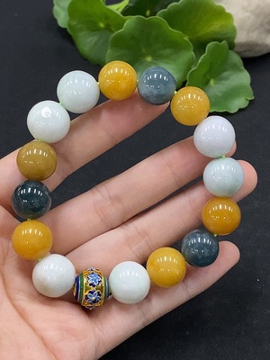 F33894989 Jadeite Bracelet Size Approx. 12.7mm Total Weight Approx. 57.8g (No Gold Inlay) (Non-A Grade Yellow Bead)