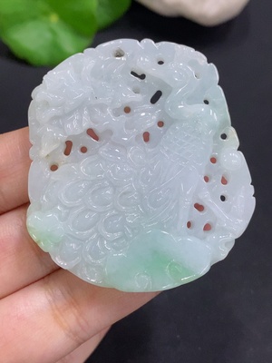 F31686109 Jadeite Peacock Pendant Total Weight Approx. 34.3g