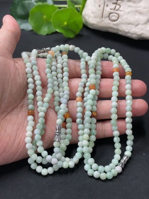 F31610984 Jadeite Bead Necklace Approx. 4.5mm Yellow Matching Beads Non-Type A
