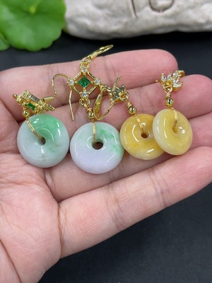 F38494054 Jadeite Safety Buckle Inlaid Ear Hooks Non-Gold Inlaid Sell as a Lot