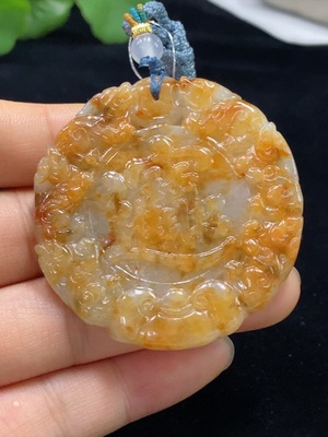 F33910736 Jadeite Wealth and Prosperity Pendant Total Weight Approx. 33.77g (including rope weight) Yellow color origin undetermined Beads non-A