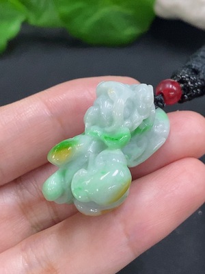 F34962136 Jadeite Pi Xiu pendant, total weight about 17.6g (including rope weight), yellow color origin undetermined