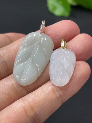 F29432990 Jadeite leaf pendant with non-gold clasp