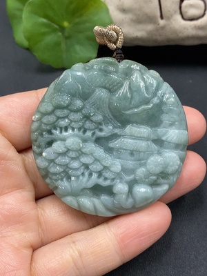 F34034038 Jadeite landscape pendant, total weight approx. 49g (including cord), yellow color origin undetermined