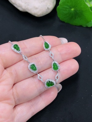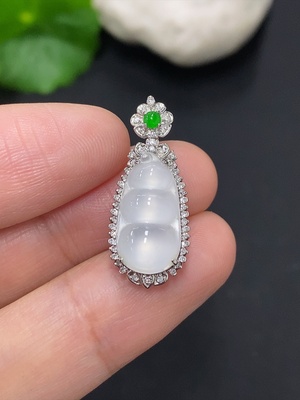 F40691463 Jadeite gourd pendant set in 18k gold with diamond accents, total weight approximately 8.15g (including chain)