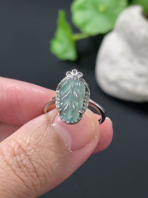 F35147022 Jadeite Leaf Inlaid Ring Non-Gold Inlaid Adjustable Size Total Weight Approx. 1.77g