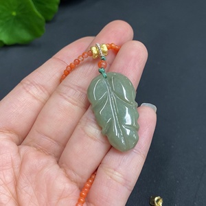 F16784436 Jadeite Pendant Leaf with Non-Jadeite Chain Total Weight 7.844g