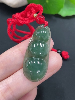 F24785664 Jadeite Lucky Bean Pendant with Rope, Total Weight Approx. 6.7g