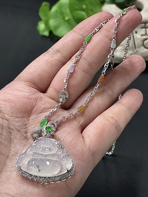 F36291832 Jadeite Buddha Pendant with 18K Gold and Diamond Accents, Total Weight Approximately 12.48g