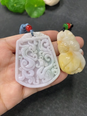 F34976327 Jadeite Pendant Sell as a Lot Yellow Part Color Origin Undetermined