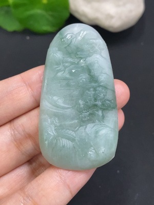 F35192372 Jadeite Unpolished Landscape Pendant, Total Weight Approximately 18.1g