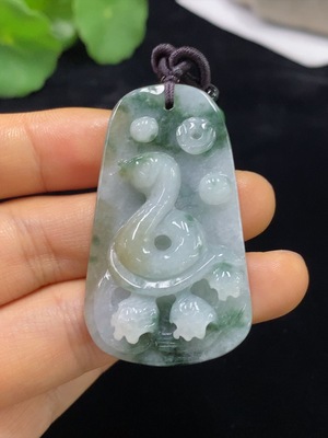 F34975012 Jadeite Snake Pendant Total Weight Approx. 31.46g (Including Rope Weight) With Non-Grade A Beads