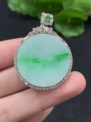F34029750 Jadeite Plain Pendant Mounted Pendant Non-Gold Mount Total Weight Approx. 10.58g With Non-Grade A Beads