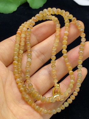 F34024095 Jadeite Bead Necklace Approx. 3.8mm Total Weight Approx. 17.47g Non-Gold Yellow Part Color Origin Undetermined