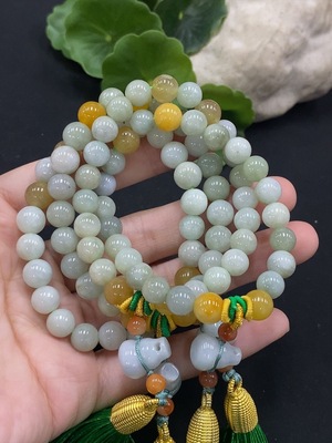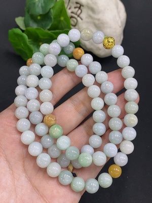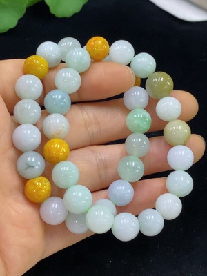 F36278624 Jadeite Bracelet Sell as a Lot Total Weight Approx.86.12g Non-A Yellow Beads Non-Gold Inlaid