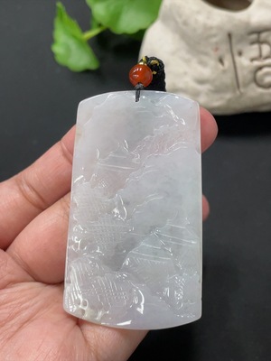 F36254522 Jadeite Pendant Landscape Plaque Total Weight Approximately 16.86g Including Rope Beads Not Grade A