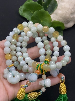 F36278617 Jadeite Bracelet/Ping An Kou Pendant Sell as a Lot Total Weight Approx. 68.51g Non-Gold Inlaid Yellow Beads Non-Grade A