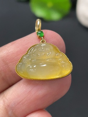 F29387413 Jadeite Buddha Pendant with 18K Gold Setting, Total Weight Approx. 2.89g, Color Origin Undetermined