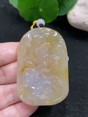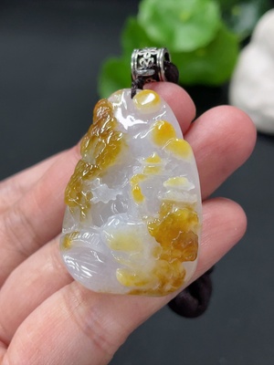 F34058689 Jadeite landscape pendant, total weight approx. 22g, yellow part color origin undetermined